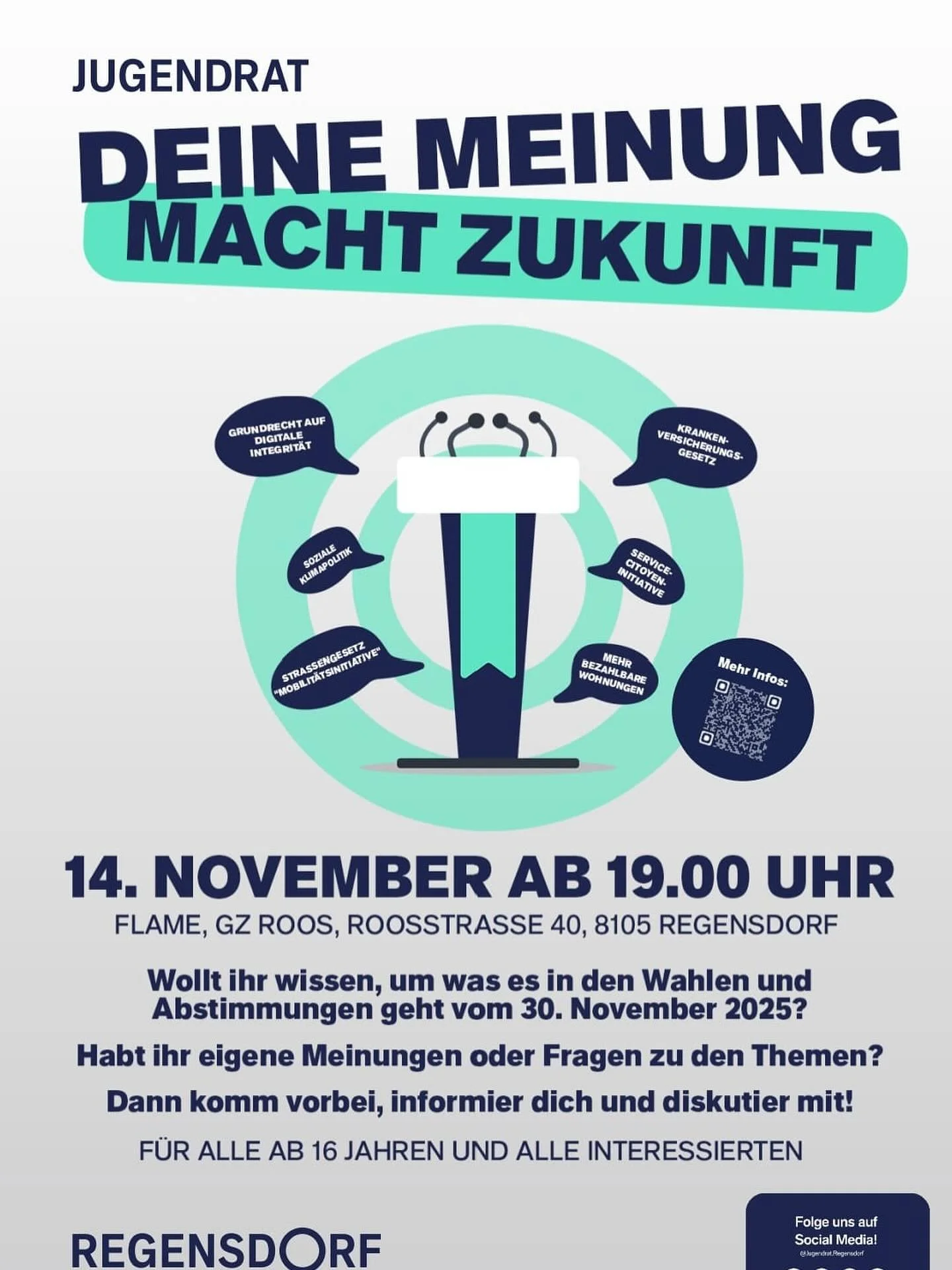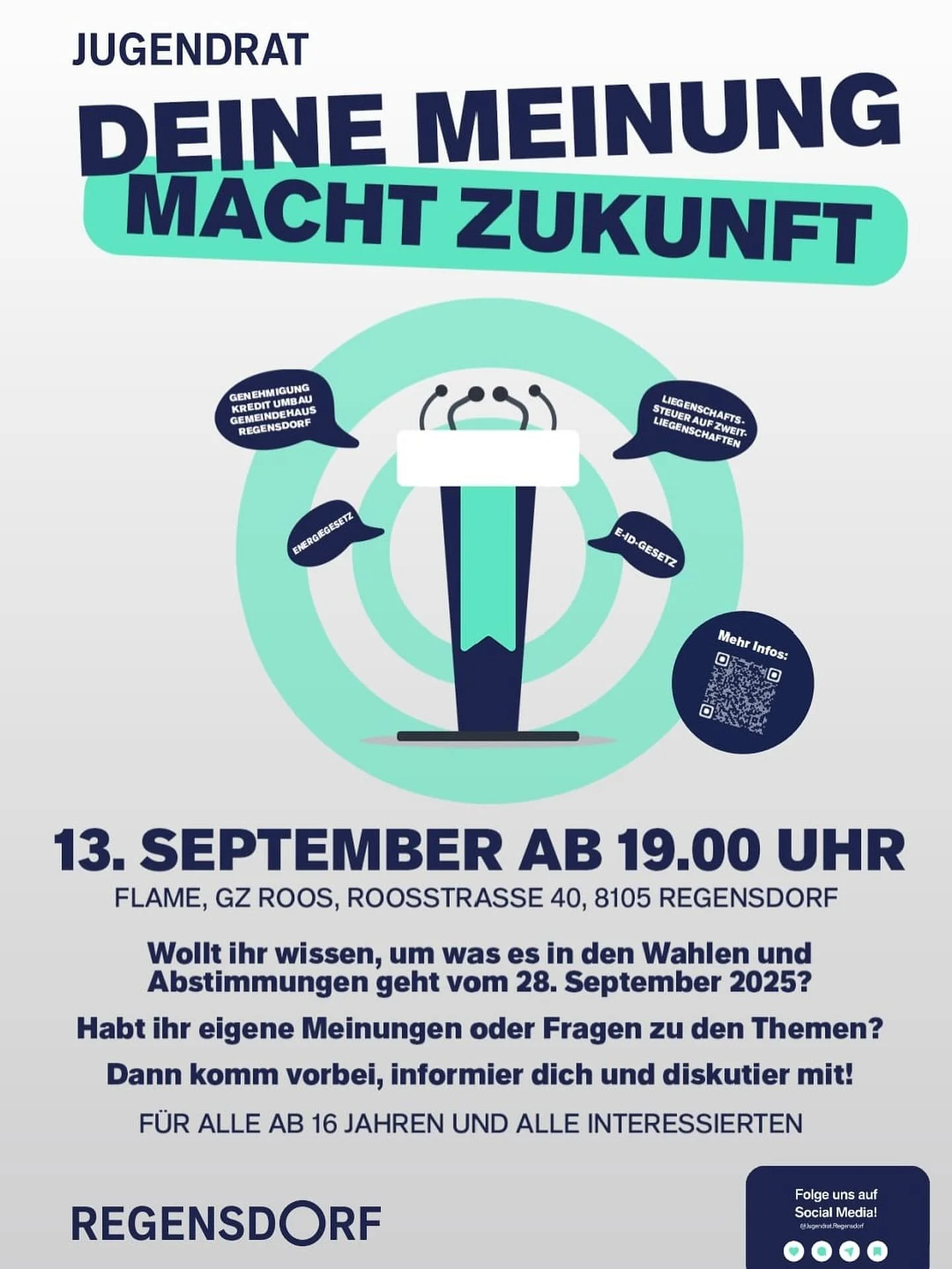 Der Jugendrat Regensdorf bietet Jugendlichen aus Regensdorf eine Plattform um ihre Anliegen einzubringen, Ideen umzusetzen und sich politisch zu engagieren.